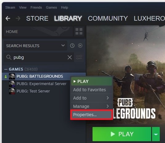 右鍵單擊《PUBG》並選擇特性。在本地文件選項卡,選擇在此窗口上驗證遊戲文件的完整性。重新下載並替換任何丟失或損壞的遊戲文件將需要一分鐘的時間。