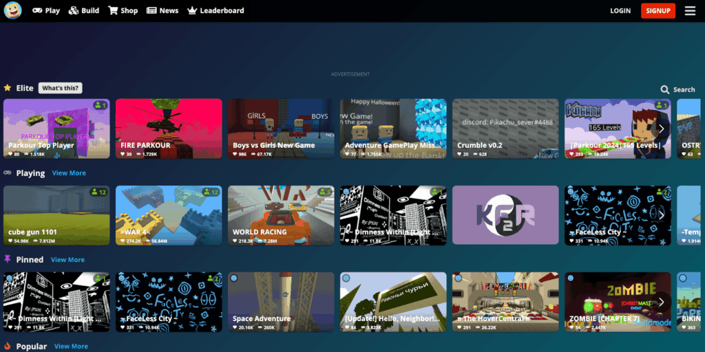 - 數以千計的用戶創建的遊戲:一個多元化的圖書館,由社區不斷更新。