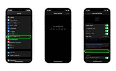 打開設定您的 iPhone 上的應用程序,選擇面部識別碼和密碼,輸入您的密碼,然後點擊重置面容 ID。