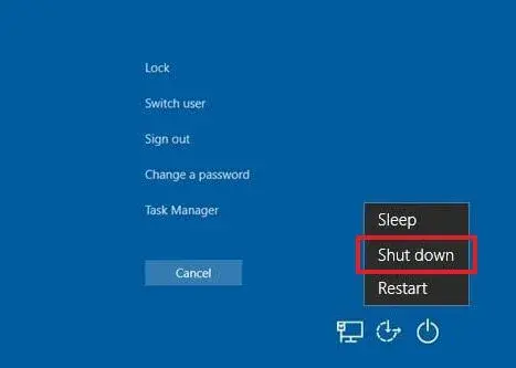 有時,任務欄問題可能會導致關機屏幕上出現“請等待 GPSVC”消息。要解決此問題,請嘗試使用 CTRL + ALT + DEL 組合鍵,打開“安全選項”窗口,然後關閉計算機。請按照下列步驟操作: