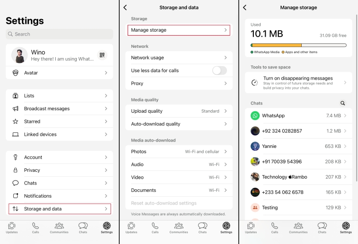 步驟1。前往設置 > 應用程序 > WhatsApp > 存儲。