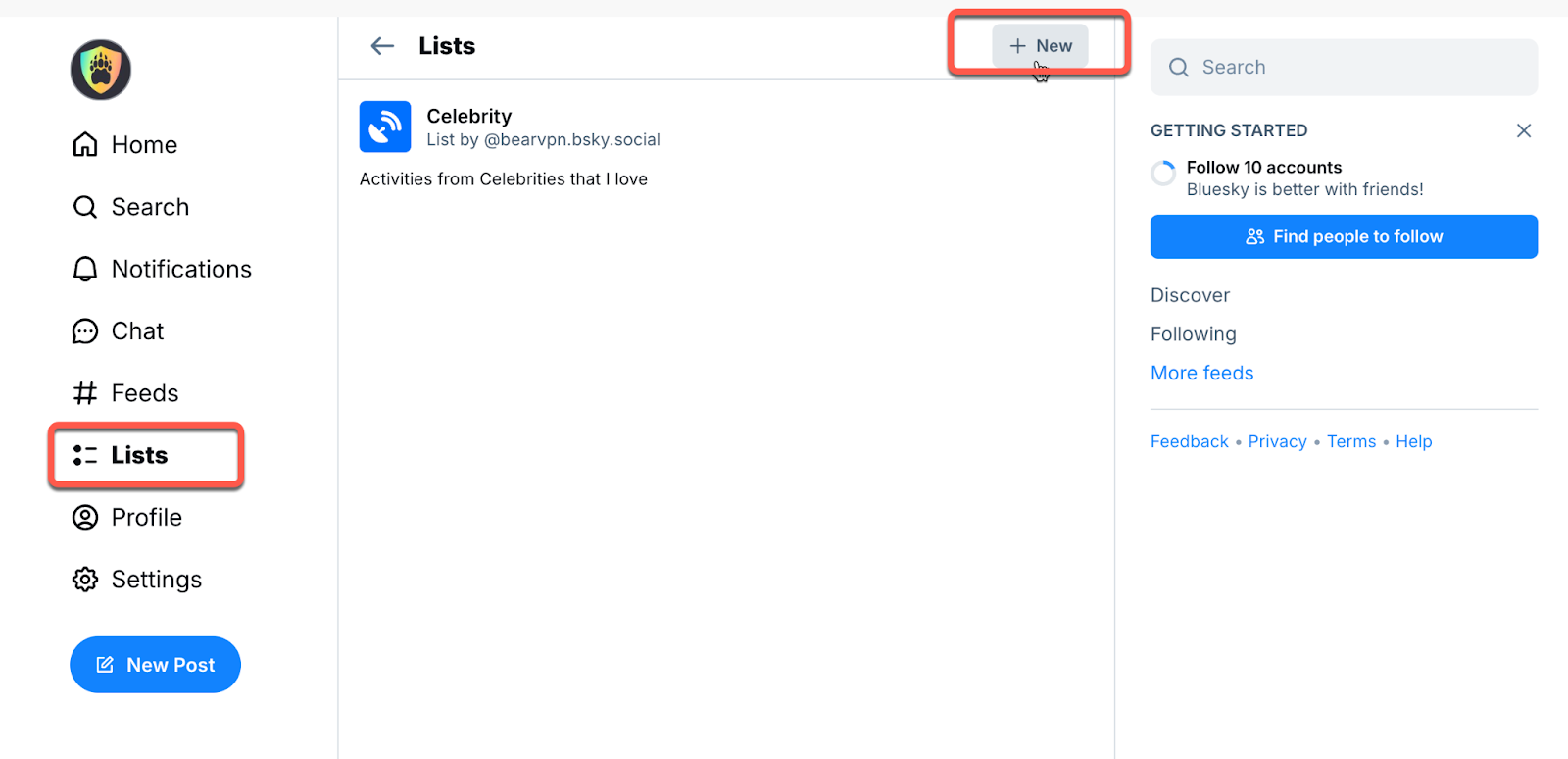 要“拯救”Bluesky 上的用戶,基本上意味著您需要創建一個可供關注的精選帳戶列表。您需要做的就是: