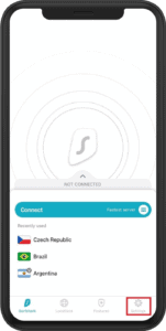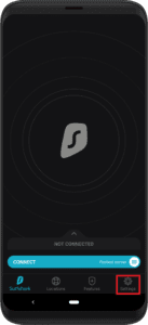 - 打開 Surfshark 應用程序並點擊設定。