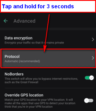 - 無國界此時不會出現。相反,請點擊協定選項三秒鐘,它會顯示無國界環境。