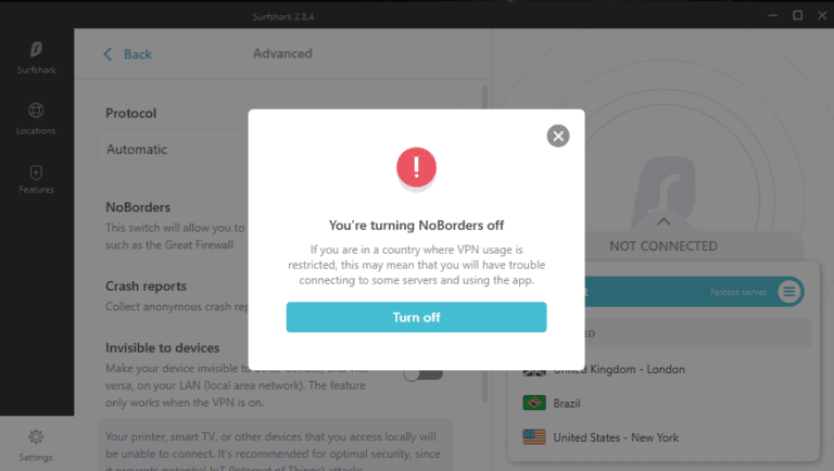幸運的是,使用 Surfshark 的 NoBorders Mode 工具就是解決方案。