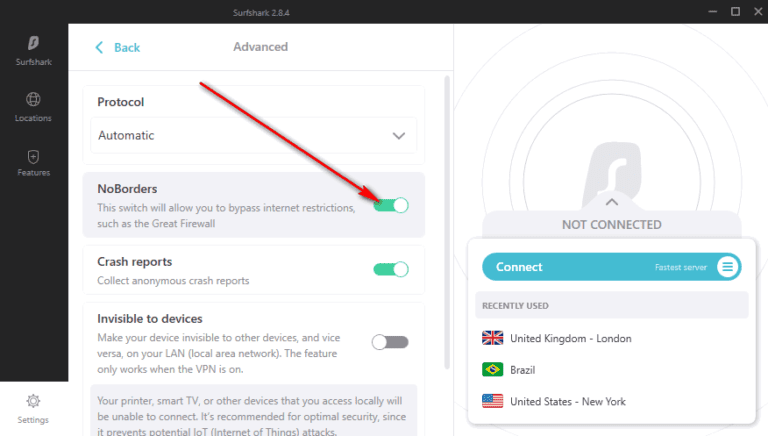 Surfshark NoBorders 模式現已啟用。