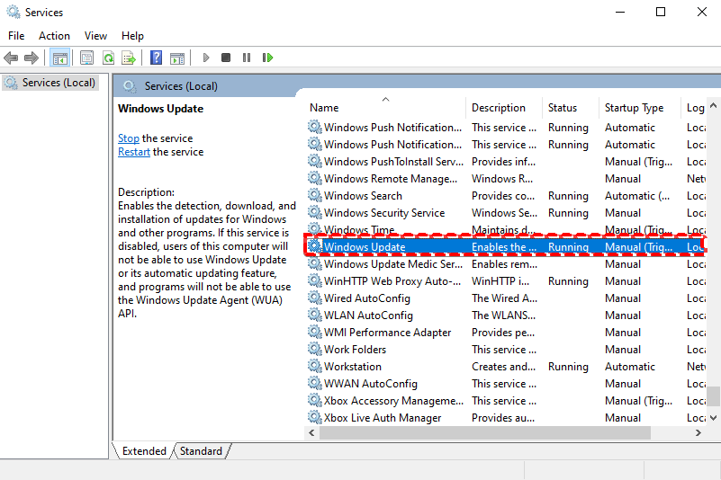 步驟 2. 找到 Windows Update 服務,右鍵單擊它,然後選擇重新啟動。