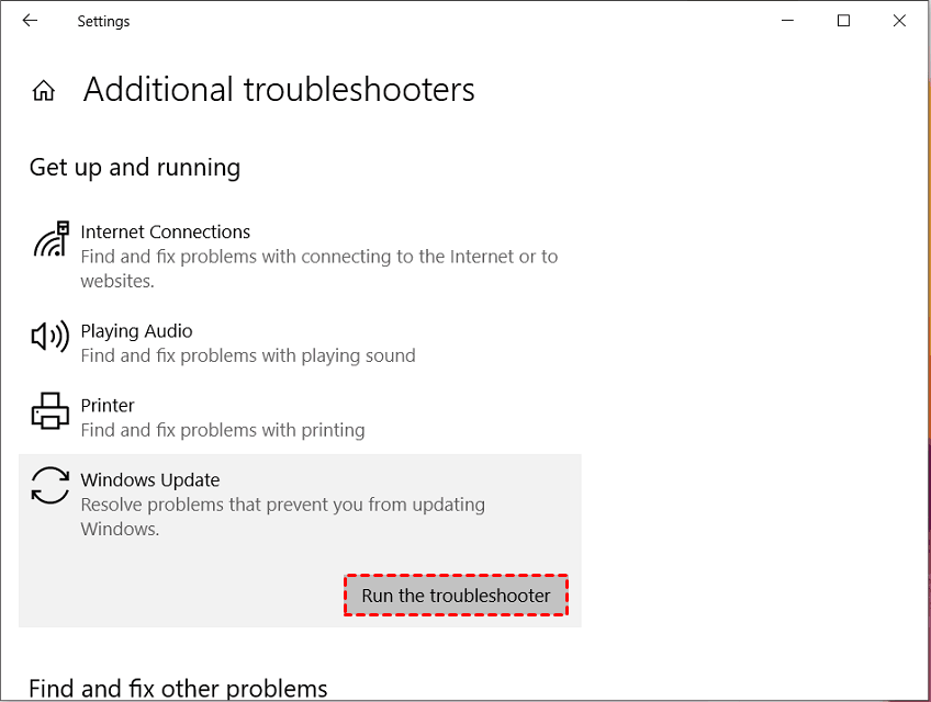 步驟 4. 單擊“運行”啟動故障排除程序,它將自動檢測並解決計算機上與更新相關的問題。