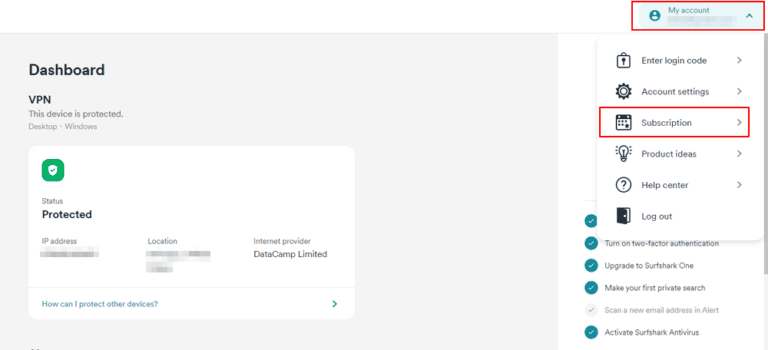 得到Surfshark 通過您首選的付款方式進行偷竊按照以下步驟操作: