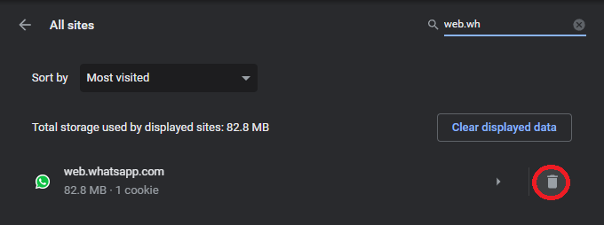 單擊“查看所有站點數據和權限”並刪除 WhatsApp 域的站點數據。也可以在 Safari 或 Firefox 等其他瀏覽器中執行這些步驟。如果問題仍然存在,請考慮使用其他瀏覽器通過二維碼驗證您的登錄。