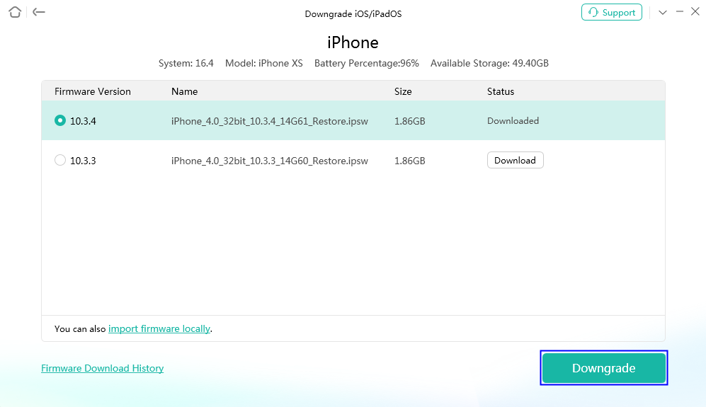 步驟4.等待下載完成。然後點擊降級恢復您的軟件版本。該過程完成後,您的手機將重新啟動。