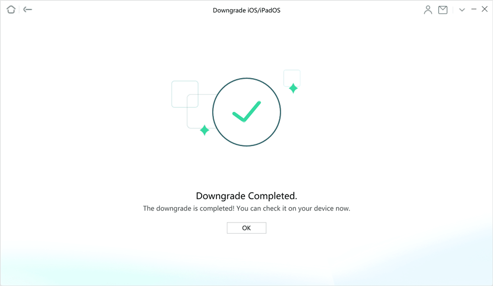 步驟 5. AnyFix 將在幾分鐘內降級您的手機。您可以使用“降級完成”窗口驗證該過程是否完成。
