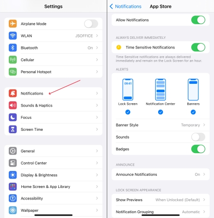步驟1。在您的 iPhone 上,前往設置 > 通知。