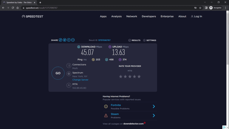 運行免費的在線速度測試,以確定互聯網連接速度慢是否是導致 VPN 斷開連接的原因。