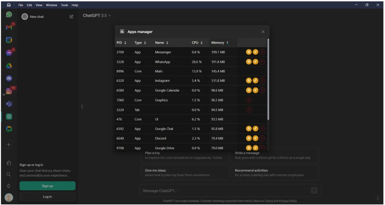 - 高消耗警報:如果應用程序突然開始使用過多的 CPU,Rambox 會顯示警告,以便您可以禁用、休眠或重新加載它,以免它降低整個系統的速度。