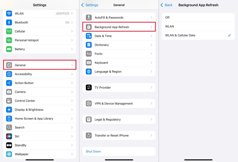 - 解決方案 1. 禁用後台應用程序刷新。前往設置 > 常規 > 後台應用程序刷新。然後點擊後台應用程序刷新並選擇離開。