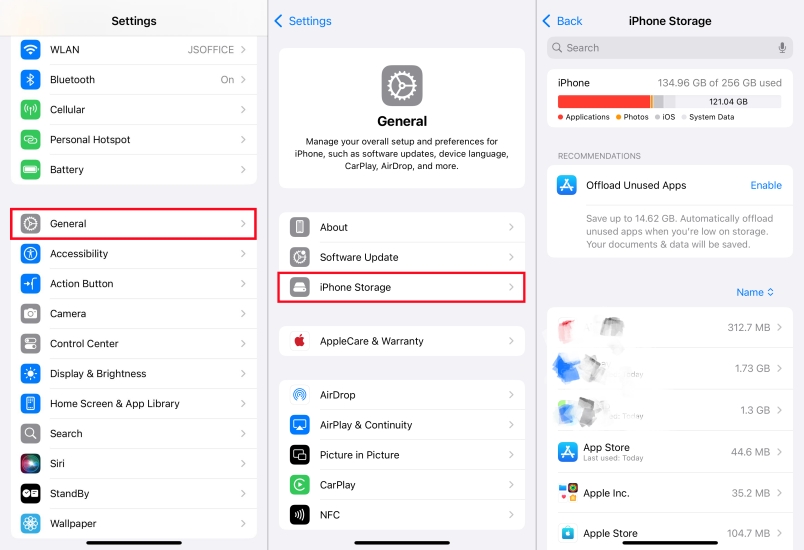 步驟1。前往設置 > 通用 > iPhone 存儲空間。