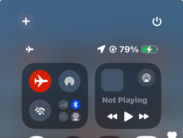 - 在重新啟動 iPhone 或關閉 iPhone 之前,向下滑動控制中心並點擊 AirPlane 圖標以啟用 AirPlane 模式 – 飛行模式會禁用所有連接和連接,包括 Wi-Fi 和藍牙