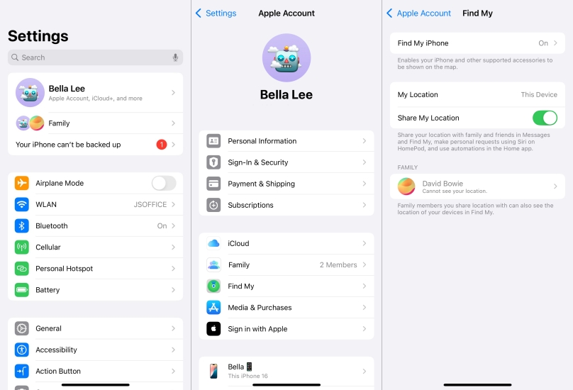 步驟1。在“設置”中,輕點您的 Apple ID,然後輸入“查找我的”。