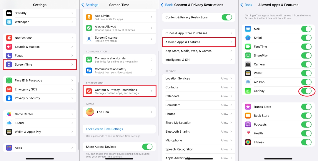 解決方案 6. 檢查 iPhone 設置中的 CarPlay 限制