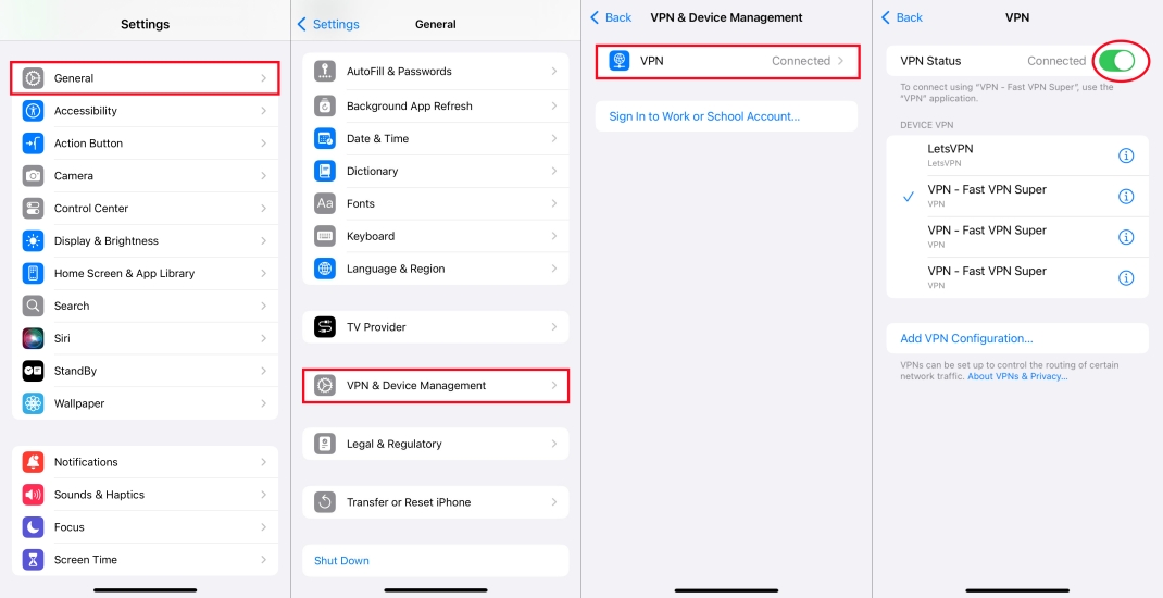 VPN 可能會干擾您的 iPhone 連接到外部網絡和設備的方式。某些 VPN 服務,尤其是那些控製或重新路由所有流量的 VPN 服務,可能會阻止 Apple CarPlay 或延遲關鍵權限。如果 VPN 干擾信號或權限,禁用或刪除 VPN 配置可以立即恢復 CarPlay。