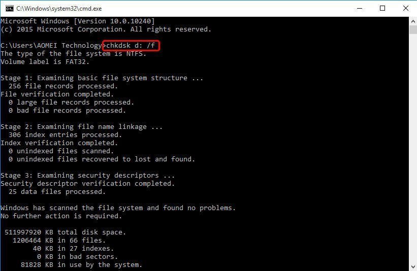 要進行全面檢查和修復,請運行chkdsk f: /f /r /x。 /r 選項修復壞扇區,恢復可讀數據,而 /x 確保在該過程之前卸載驅動器。 /r 可能無法恢復所有數據,因此請安排定期備份以防萬一。