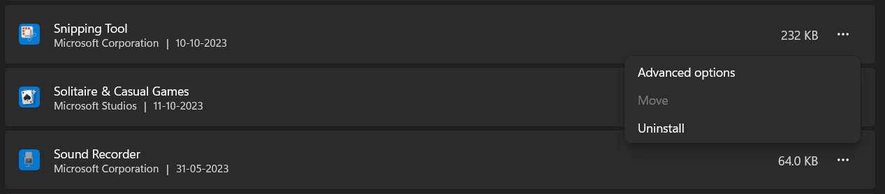 如果到目前為止沒有任何效果,請從您的電腦卸載並重新安裝該應用程序。這對許多用戶都有效,可能也對您有效。無論您使用哪個應用程序,無論是 Snipping Tool 還是 Snip & Sketch,快捷方式不起作用的問題都可以通過完全卸載並重新安裝最新版本來解決。