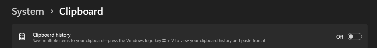 您拍攝的屏幕截圖或您在屏幕上選擇要捕獲的區域將直接粘貼到您電腦上的剪貼板。如果出於任何原因,您的電腦上的剪貼板歷史記錄已關閉,則不會保存屏幕截圖,並且 Win+Shift+S 的用途就會丟失。確保使用以下步驟啟用它 –
