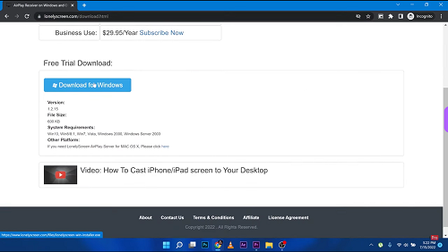 步驟1。下載孤獨屏幕適用於您的 Windows PC。下載完成後運行安裝文件。然後按照屏幕上的說明安裝 LonelyScreen。